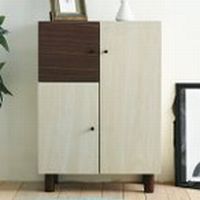 女子力高めの大人可愛いキャビネットです。木目のあるナチュラル×ダークブラウンのツートーンで、ちょっぴりレトロ感のあるデザインです。収納部はすべて扉付きなので、たくさん収納しても扉を閉めれば見た目がスッキリ片付いた印象になります。シリーズ商品を積み重ねたり並べたりして自分好みにアレンジし、暮らしにフィットしたレイアウトをお楽しみいただけます。