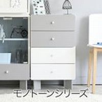グレー&ホワイトのモノトーンカラーで仕上げた優しい雰囲気の家具シリーズ。 クールな印象になりがちなモノトーンカラーをやわらかい配色で仕上げることで、 インテリアとして取り入れやすく気軽にコーディネートを楽しんでいただけます。 コンパクトで可愛いチェストは一人暮らしのお部屋にぴったり!