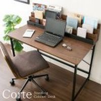 雑誌やノート、タブレットなどデスク周りに必要なものを 見やすいよう立てかけて収納できる スタンディング収納付きデスク『Corte(コルテ)』。 パソコン作業が快適な広い天板に、 三段のスタンディング収納とコンセント付きで使い勝手バツグン。 落ち着きのあるブラウンの木板とシックで丈夫な スチールフレームのお部屋に馴染みやすいデザインです。 もっと収納力が欲しい方は、 同シリーズのデスクサイドワゴンと合わせてお使いいただけます。