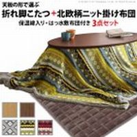 フラットヒーター折れ脚こたつ アロー スクエア+北欧柄ふんわりニットこたつ掛布団+撥水フランネルこたつ敷布団 3点セット こたつテーブルセット
