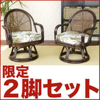 籐回転いす 高座椅子 低いイス ラタン パーソナルチェア 肘掛付き おしゃれ 和風 ハイタイプ 2脚セット 2個組 アジアン イージーチェアー ラウンド ソファ 1人掛け カラフル グランピング ON&ON